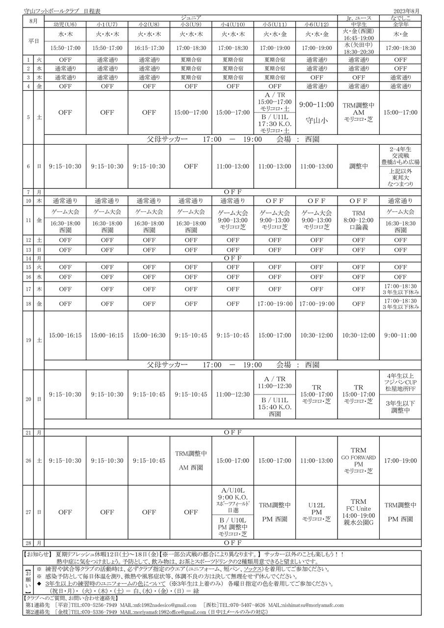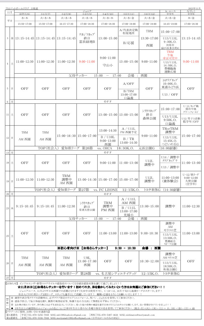 🔳守山父母⚽サッカーの追加予定を時間変更しました