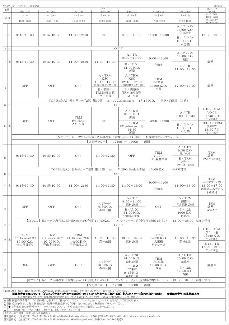 🔳また、他にも試合調整等の予定追加、変更が一部ございます
