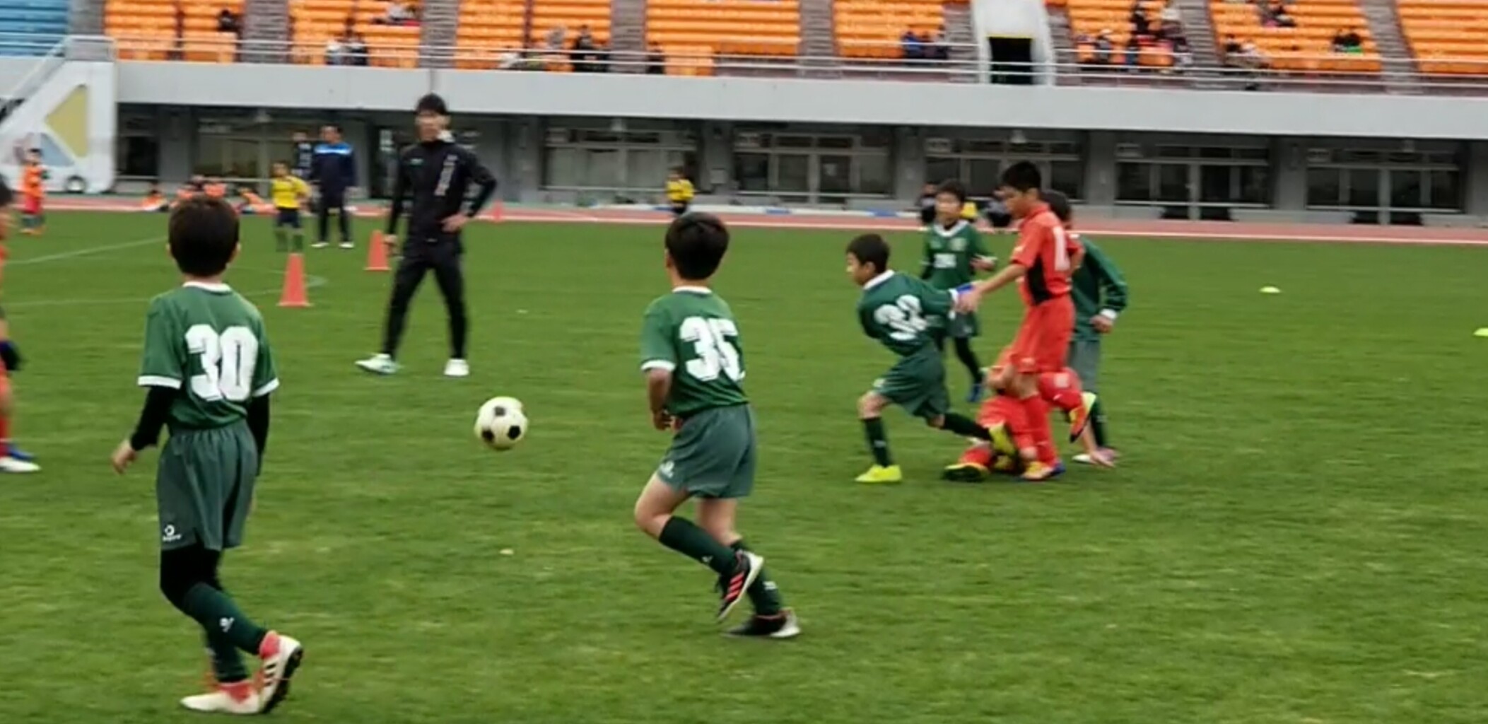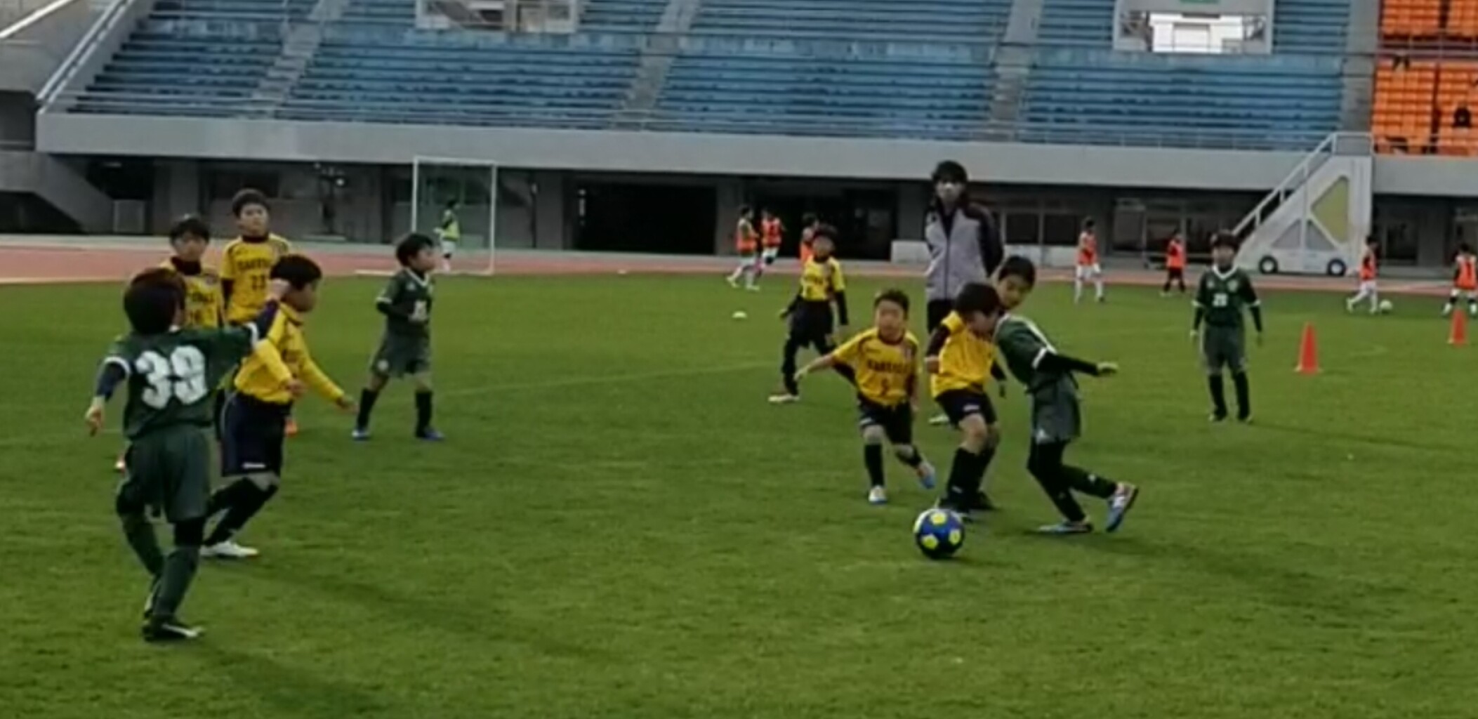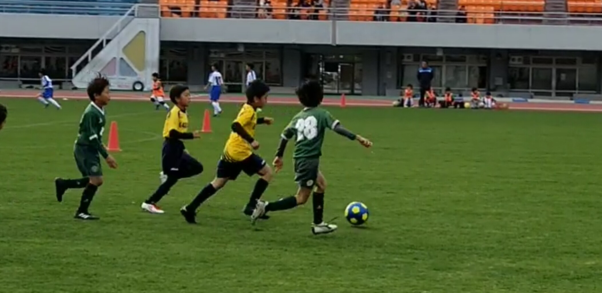 相手が横へドリブル⚽でかわす→2ndDFが先読みしてクリア (´-ω-`)フイ-.....アブネ